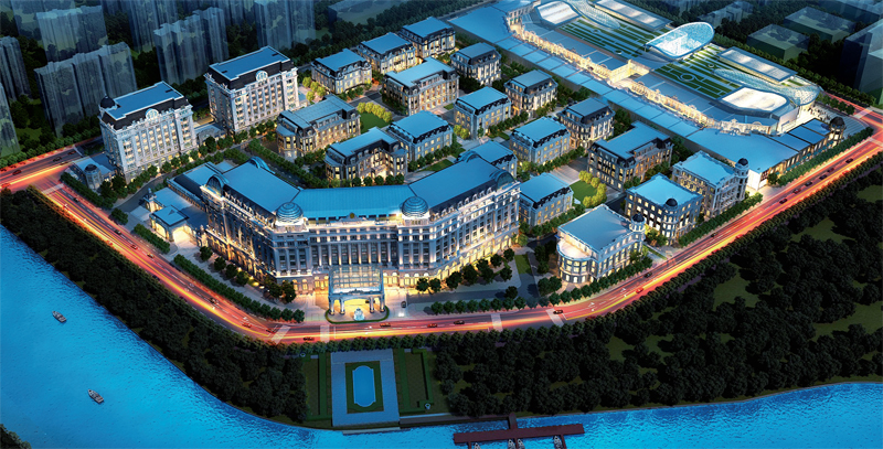 項目位于上海市虹橋商務核心區,總建筑面積28萬平方米, 為新古典主義建筑風格,是集高品質企業獨棟辦公樓、綜合購物中心、五星級酒店等于一體的虹橋商務新地標。